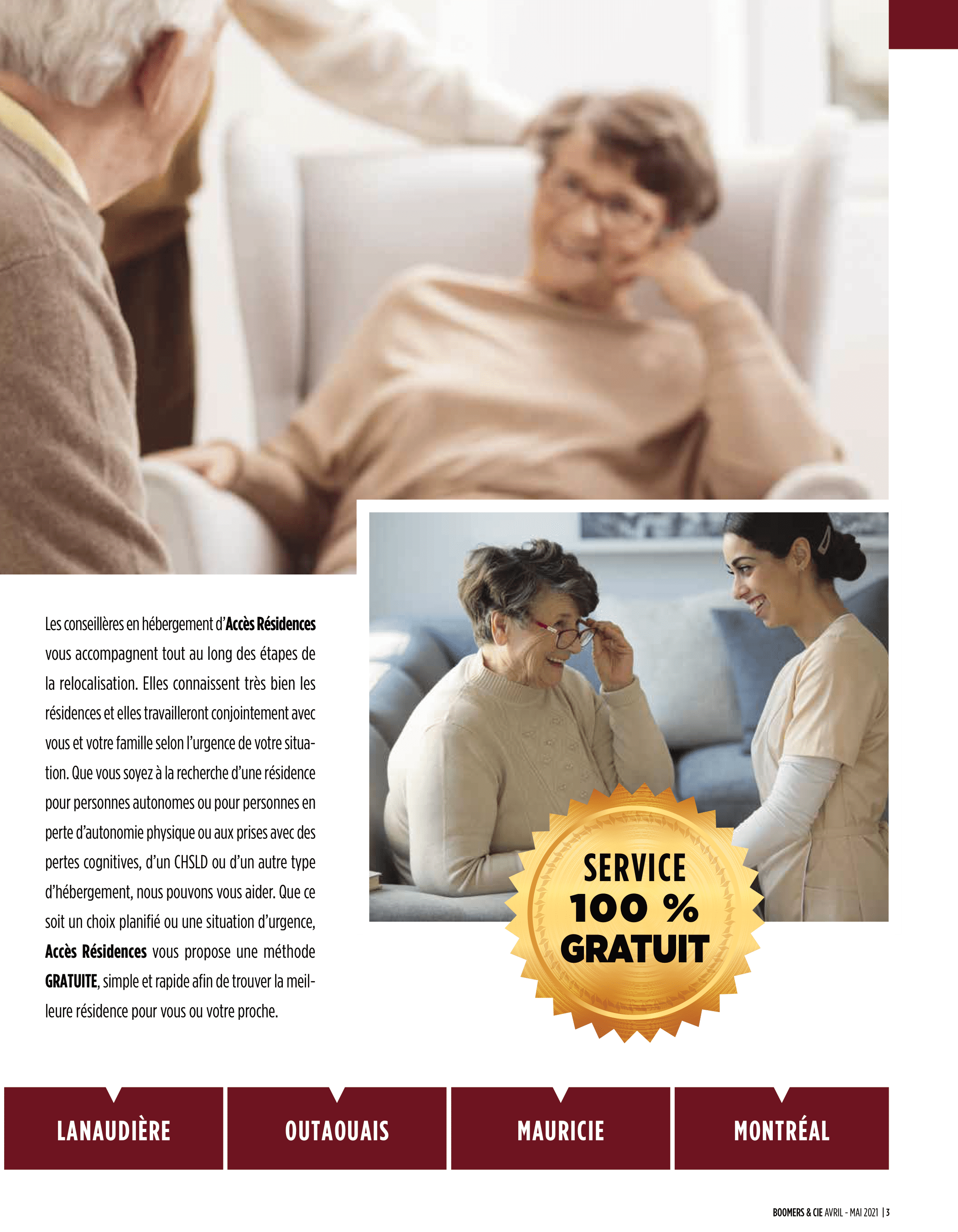 résidences et elles travailleront conjointement avec vous et votre famille selon l’urgence de votre situation. Que vous soyez à la recherche d’une résidence pour personnes autonomes ou pour personnes en perte d’autonomie physique ou aux prises avec des pertes cognitives, d’un CHSLD ou d’un autre type d’hébergement, nous pouvons vous aider. Que ce