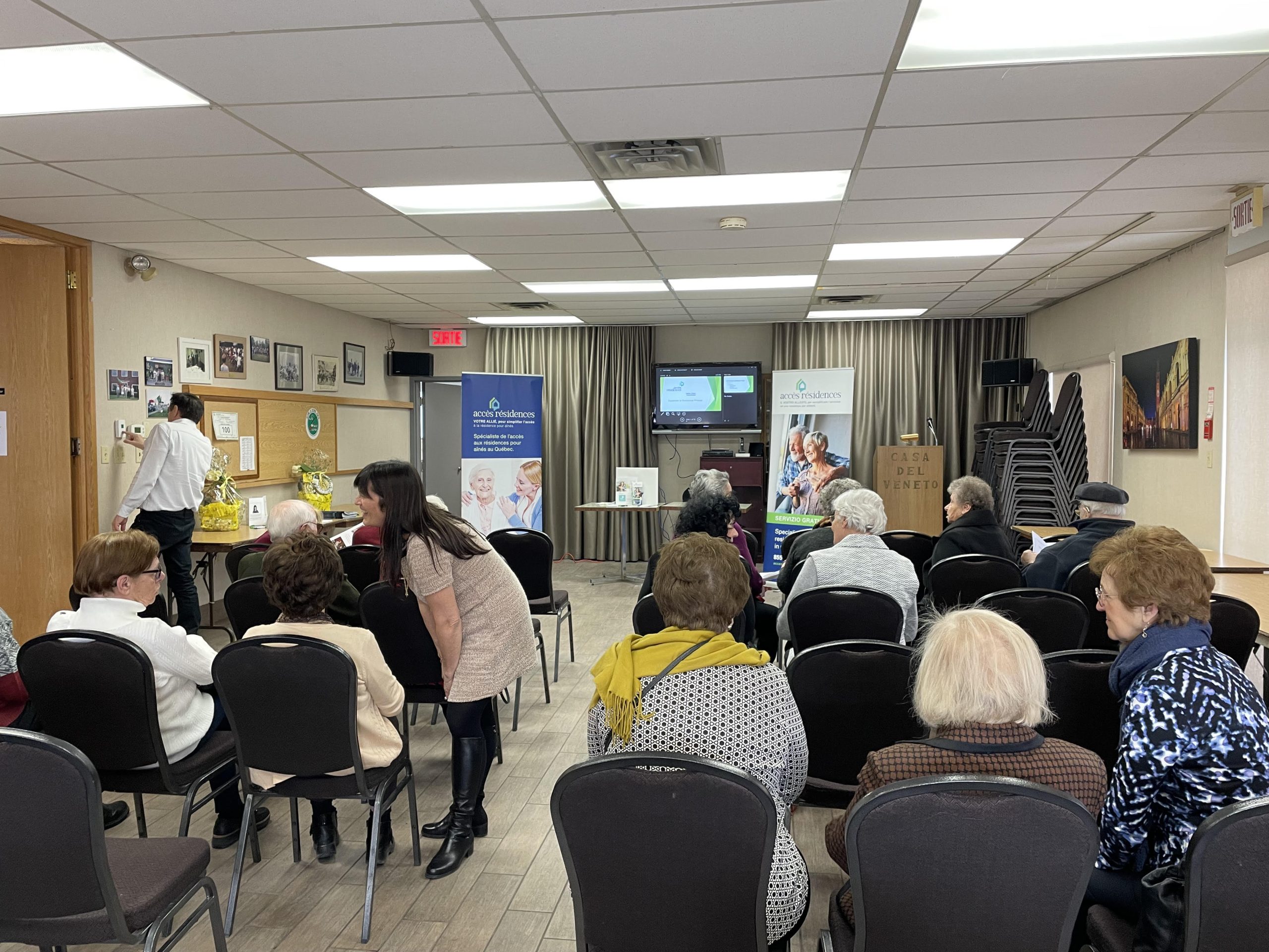 L’événement s’est déroulé à la Casa del Veneto , où plus d’une trentaine de personnes se sont réunies entre 14h et 16h. À l’aide d’un support visuel en italien et d’une bannière explicative, Nadia a pu informer les participants sur les résidences pour aînés (RPA) au Québec. Elle a souligné que ces établissements sont en mesure de répondre aux attentes des familles et que, grâce à son accompagnement entièrement gratuit, elles peuvent faire un choix éclairé en toute sérénité.